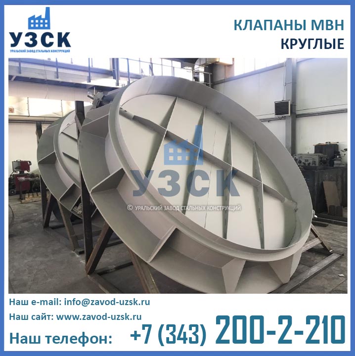 У клапанов МВН несколько разновидностей в зависимости от геометрической формы конструкции и количества осей на заслонке. При этом диаметр предохранительного клапана может быть в диапазоне 100-1800 мм.
